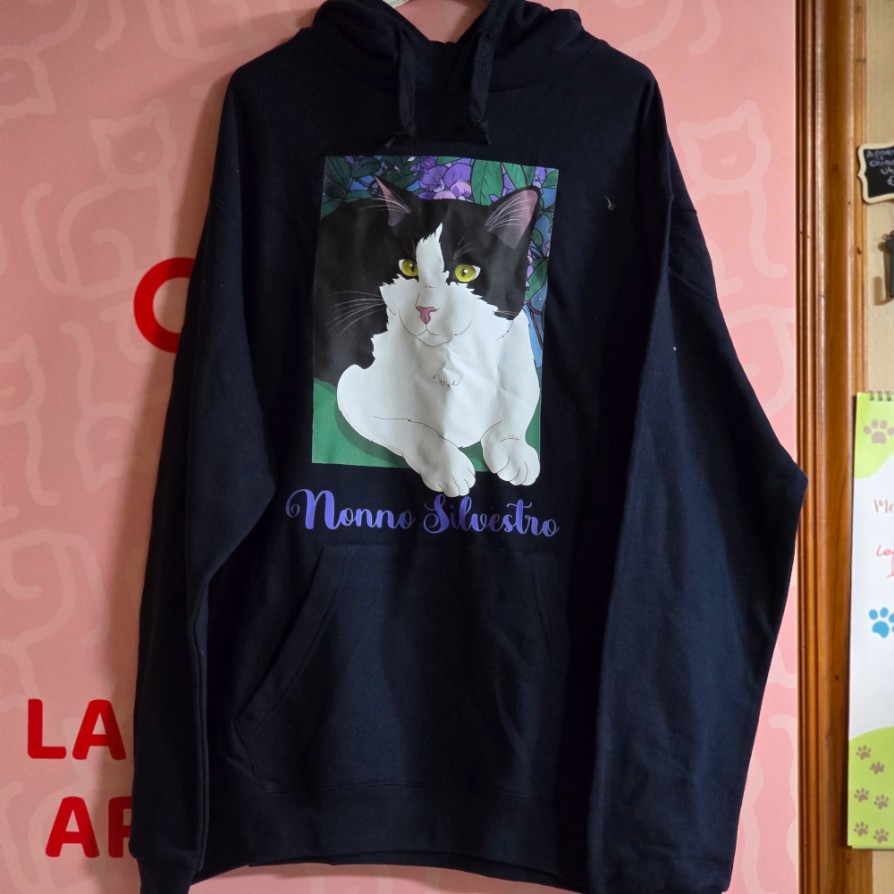 Felpa Nonno Silvestro Disponibile su ordinazione prenotando via whatsapp allo 392.2261980 dalla XS alla XXL modello senza cappuccio nero, grigio, bianco, rosso, verde, modello con cappuccio colori bianco, nero, grigio, rosso, blu navy, blu elettrico