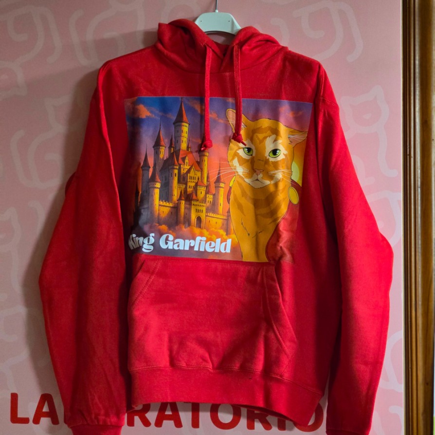 Felpa Garfield Disponibile su ordinazione prenotando via whatsapp allo 392.2261980 dalla XS alla XXL modello senza cappuccio nero, grigio, bianco, rosso, verde, modello con cappuccio colori bianco, nero, grigio, rosso, blu navy, blu elettrico
