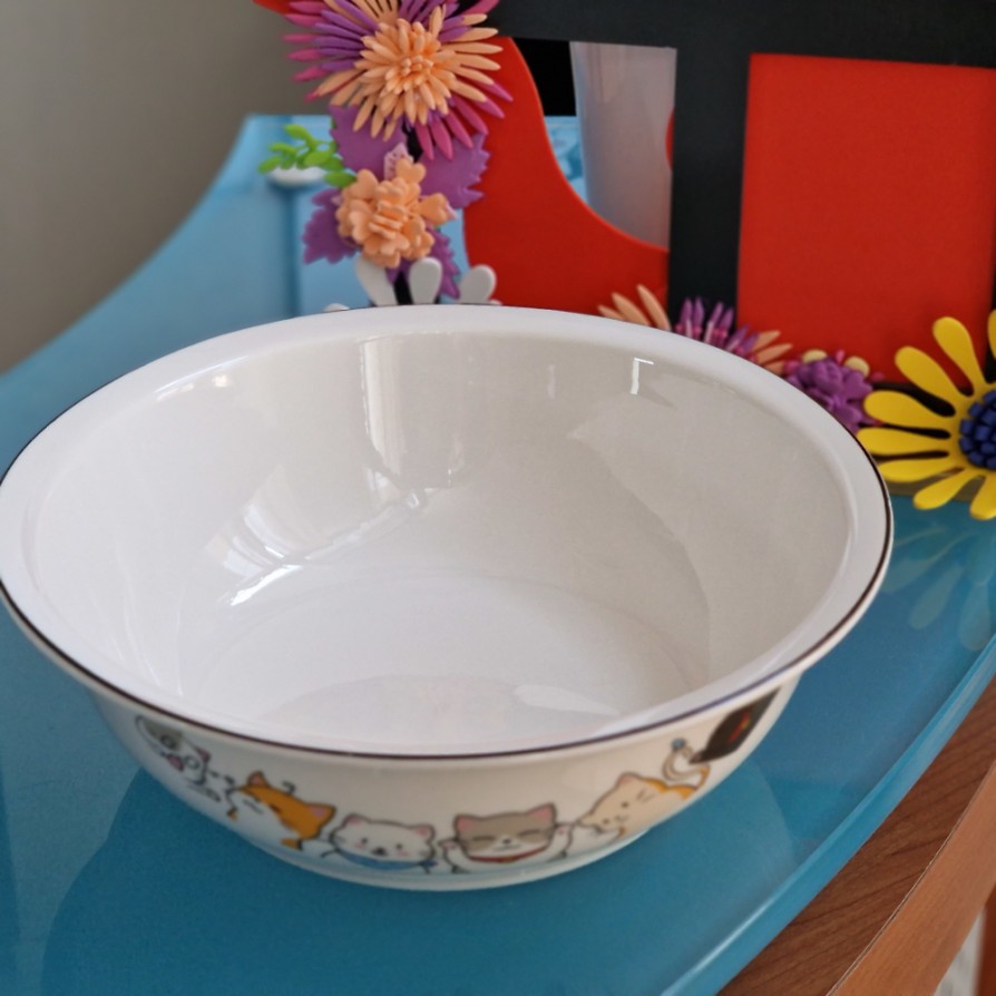 Insalatiera in ceramica con stampa gatti colorati. Diametro 22 cm